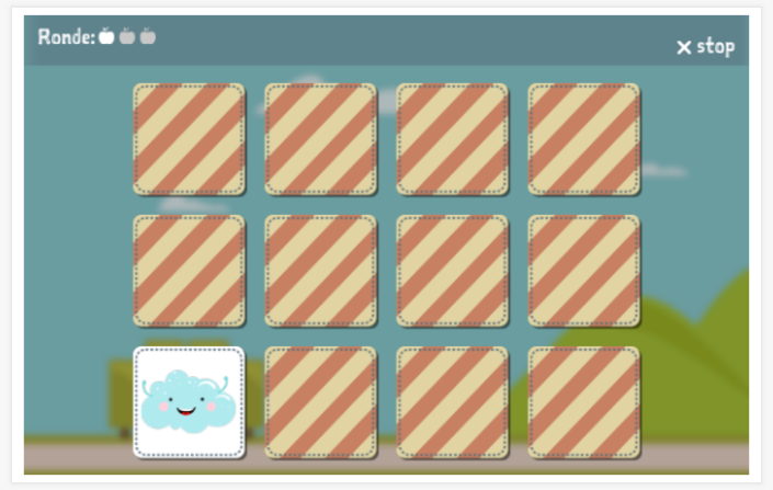 Vind alle paren in het spel! Tijdens het omdraaien van de kaartjes worden de woorden uitgesproken. Als twee dezelfde kaartjes gevonden worden verschijnt er een korte oefening. Hierop worden de kaartjes groot getoond, wordt de schrijfwijze getoond en kan het kind met een druk op de knop de uitspraak herhalen.
