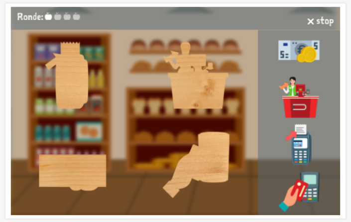 - Knip producten uit een folder. Ga naar de winkel.